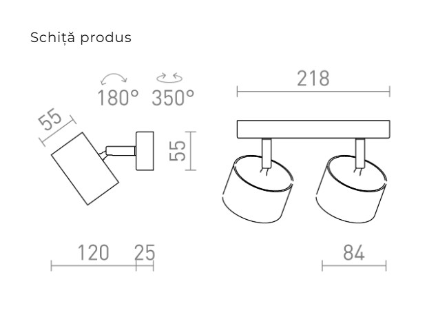 Este compatibil cu surse de lumină LED cu soclu GX53, oferind o soluție eficientă din punct de vedere energetic și un iluminat direcționabil, adaptabil nevoilor tale.
