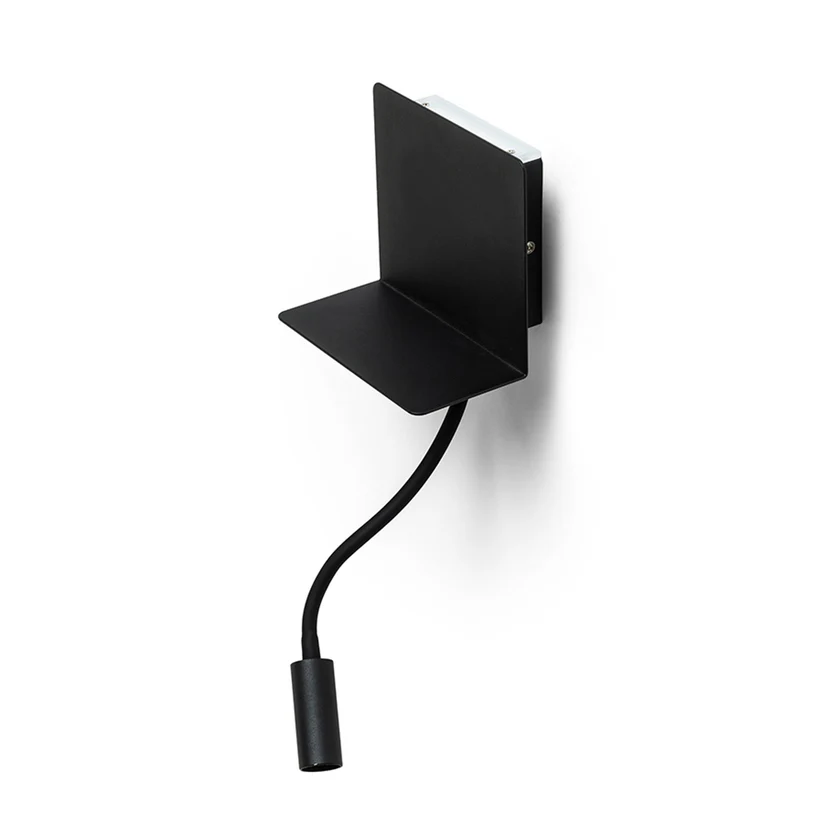 Aplica ROSTAM combină funcționalitatea modernă cu designul practic, oferind atât iluminare direcțională, cât și iluminare indirectă. Este dotată cu spot LED cu gât flexibil, permițând orientarea luminii exact acolo unde este necesară, și cu raft pentru stocarea telefonului, echipat cu port USB integrat pentru încărcarea rapidă a dispozitivelor.