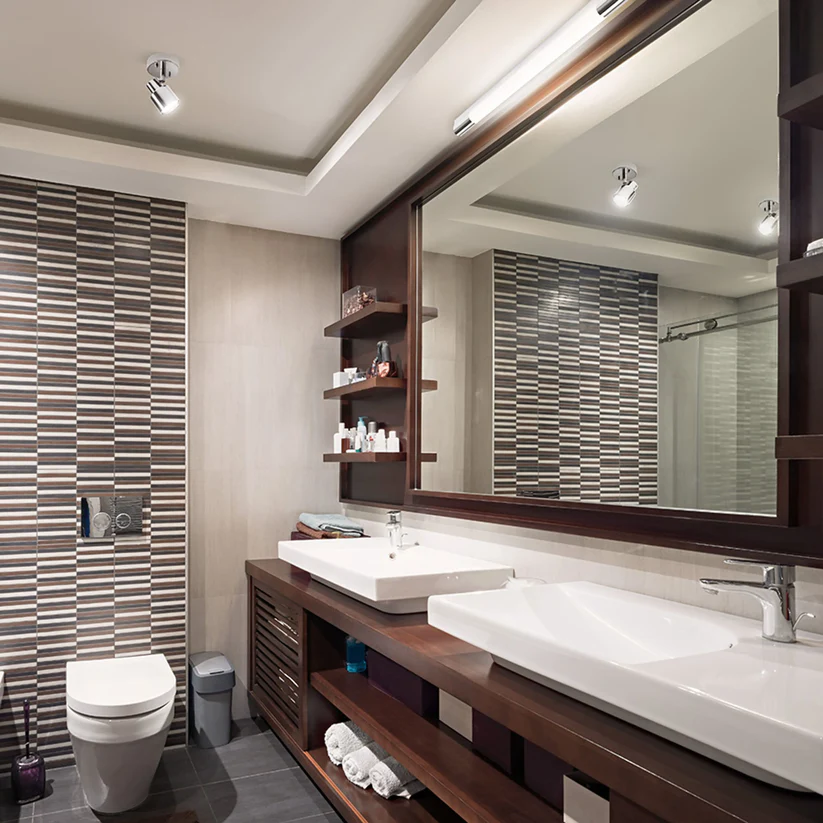 Echipată cu soclu GU10 pentru surse de lumină LED, această lampă oferă un iluminat eficient și economic. Designul său simplu și funcțional, adaptat mediilor umede, o face o soluție practică și sigură pentru orice baie modernă.