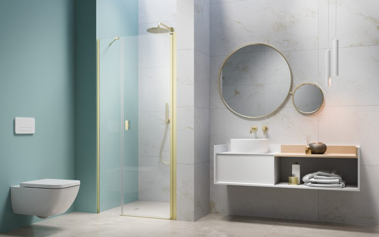 Realizat din sticlă securizată de înaltă calitate, produsul oferă durabilitate și siguranță în utilizare zilnică. Profilul metalic cu finisaj Brushed Light Gold completează designul premium și asigură rezistență în timp.