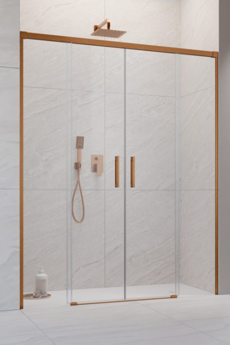 Realizată din sticlă securizată de 8 mm, cabina oferă durabilitate și siguranță în utilizarea zilnică. Profilul metalic cu finisaj cupru periat oferă stabilitate și completează designul modern al produsului.