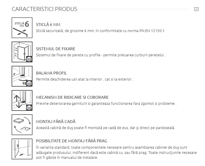 Realizat din sticlă securizată de înaltă calitate, produsul asigură durabilitate și siguranță în utilizare zilnică. Profilul metalic cu finisaj Brushed Copper completează designul elegant și oferă stabilitate pe termen lung.