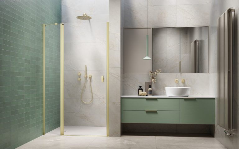 Realizată din sticlă securizată de înaltă calitate, cabina asigură durabilitate și siguranță în utilizare zilnică. Profilul metalic cu finisaj Brushed Light Gold completează designul premium și conferă stabilitate pe termen lung.