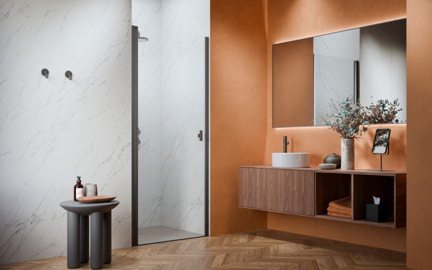 Realizată din sticlă securizată de înaltă calitate, cabina asigură durabilitate și siguranță în utilizarea zilnică. Profilul metalic cu finisaj Brushed GunMetal completează armonios designul și oferă stabilitate și rezistență în timp.