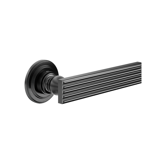 Mânerul ELEONORA cu rozetă rotundă, în finisaj PVD Grafit Satinat, este un accesoriu modern și elegant, ideal pentru cei care apreciază designul sofisticat combinat cu durabilitatea materialelor. Nuanța grafit satinat oferă un aspect contemporan, subtil și rafinat, transformând ușa într-un detaliu decorativ distinctiv pentru orice interior.